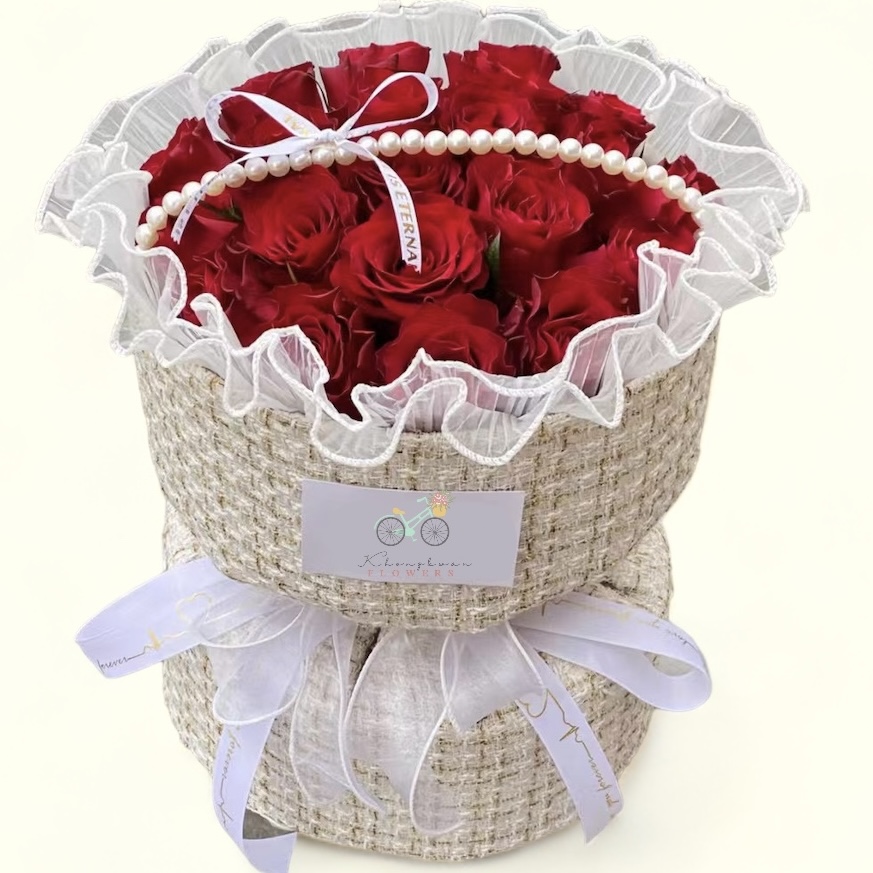 จำนวน XL52 15red rose ห่อผ้าทวิตสไตล์เกาหลีคาดมุก ชิ้น